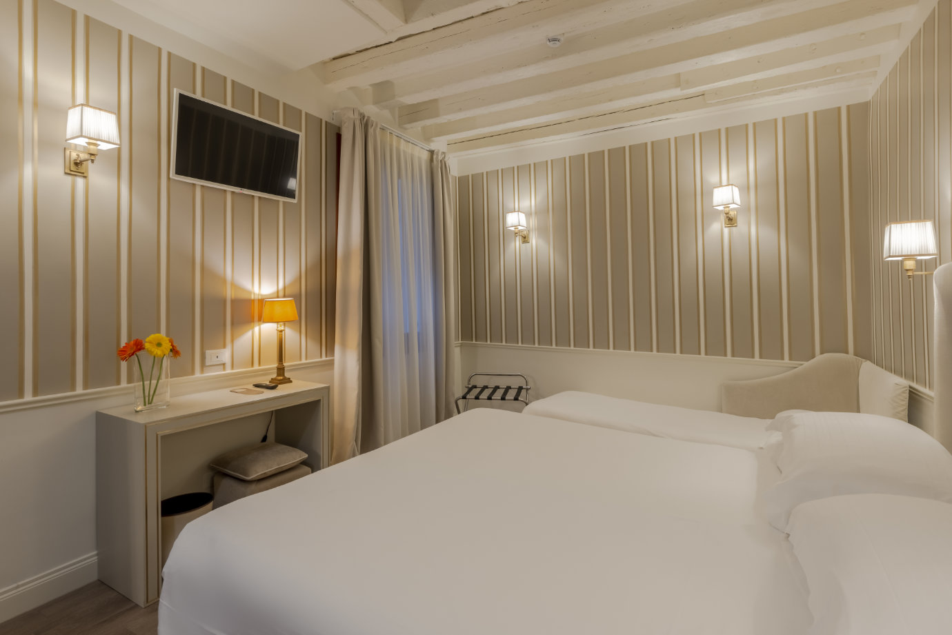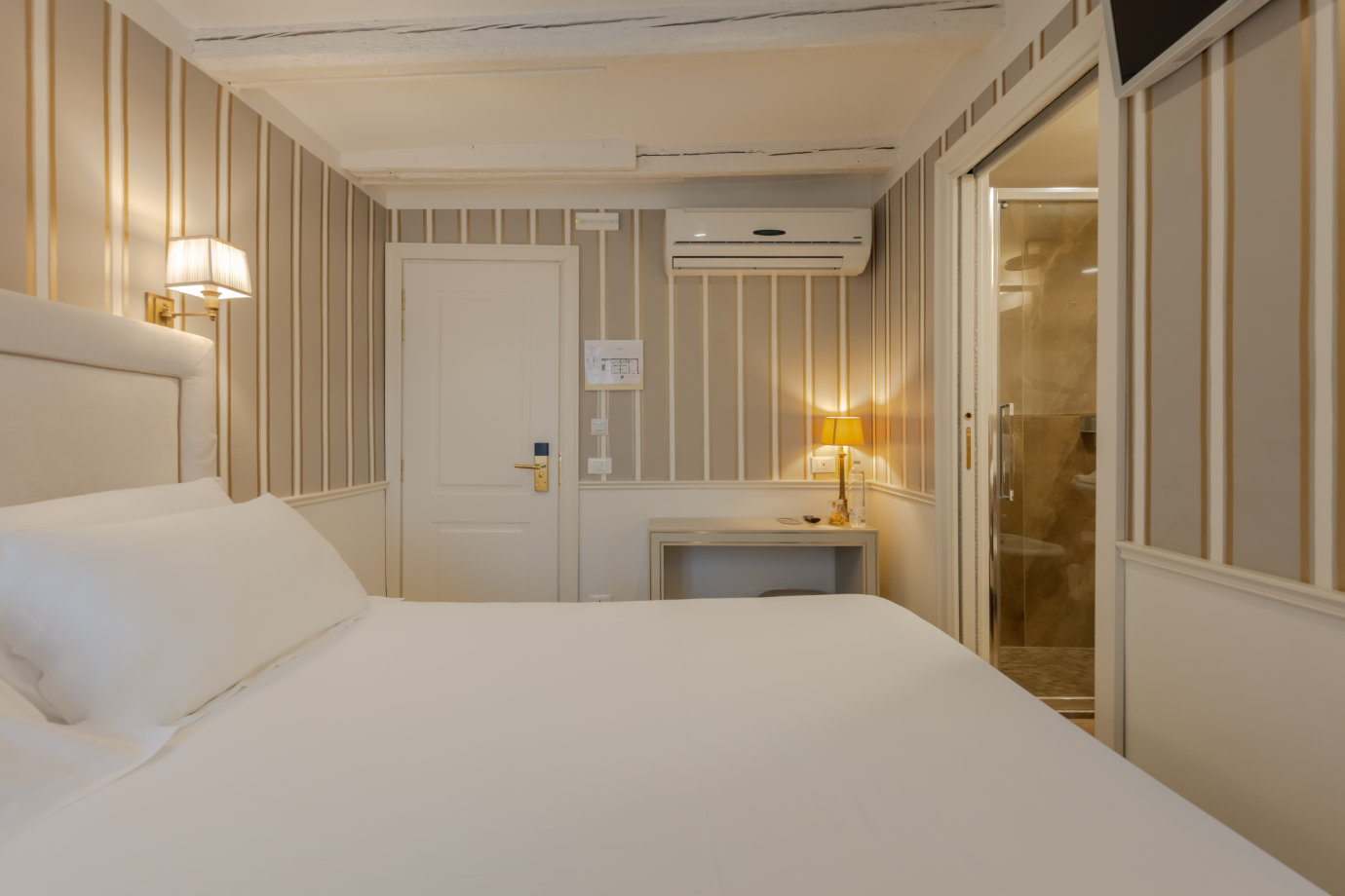 Toutes nos chambres ont une salle de bain avec baignoire ou douche, wc, et sont équipées de l’air conditionné, d’un téléphone direct, d’un sèche-cheveux, de la tv par satellite, d’un coffre-fort à combinaison digitale, d’un mini bar, et du wifi gratuit.